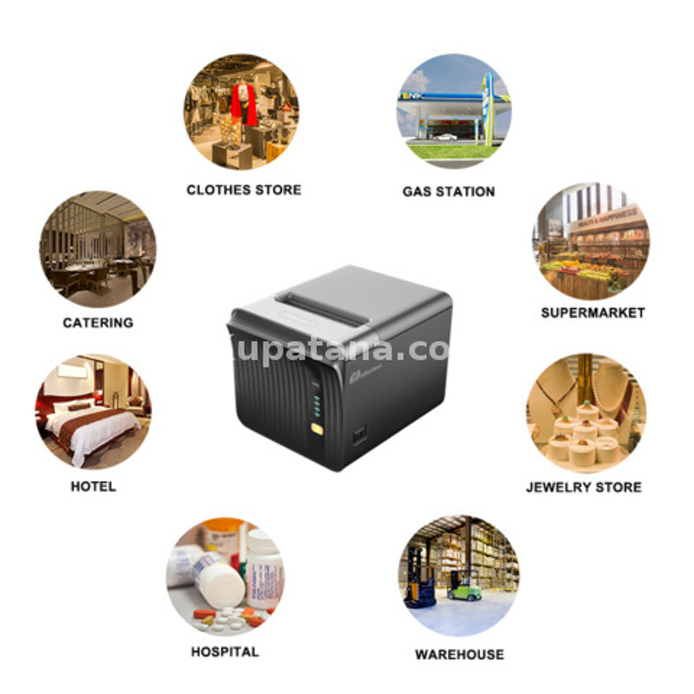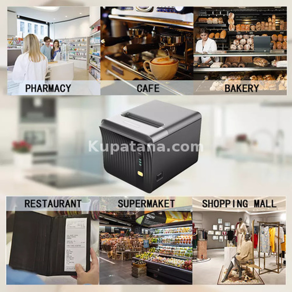 Brand: Romeson Model: QP250M Place of Origin: Taiwan Printing Method: Direct Thermal Paper Width: 80mm Printing Width (Effective): 72mm Printing Density: 576 dots/Line , 8 dots/s Printing Speed: 250mm/s Paper Type: Thermal Paper Diameter: ≦85mm Paper Thickness: 0.05-0.15mm Cutter Life: 1.5 million cuts Code Type: UPCA/UPCE/EAN13/EAN8/CODE39/125/CodeBar/CODE128/CODE93/CODE11/MSI/QRCORE/PDF417 Printing Command: Compatible with EPSON ESC/POS/Tspl/OPOS Cash Drawer Control: DC 24 V/1 A Auto Cutter: Partly cut/Full cut Paper presence detection: Photoelectric Sensors Driver: Windows/POS/Linux/Android/Mac/OPOS Print head life: 150KM Power Supply: AC100V-240 Voutput: DC24V/3A SUITABLE FOR:- Supermarket, restaurant, gas station, retail shop, lottery, café, clothing store, hotel, Catering, Tax, Bank, Medical care, Kitchen, convenience store and many other applications HIGHLIGHTS High printing speed 250mm/s Low noise Auto cutter support Desktop or wall-hanging Interfaces: USB+SERIAL+LAN PACKAGE CONTENTS: 1 x Thermal Printer 1 x EU Plug 1 x USB Cable 1 X Paper roll 1 x User Manual OUR PRODUCTS ARE BRAND NEW(FULL BOX) WITH ONE YEAR WARRANTY CALL/TEXT/WHATSAPP US VIA 0763069003