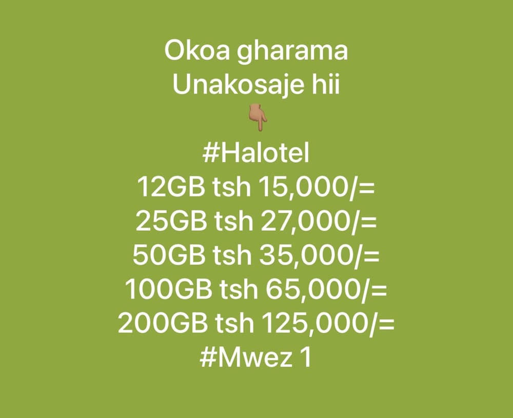 Unangwa ndo unalipa 0674294643 / 200GB tsh 125,000 100GB tsh 65,000 50GB tsh 35,000 25GB tsh 27,000 12GB tsh 15,000
