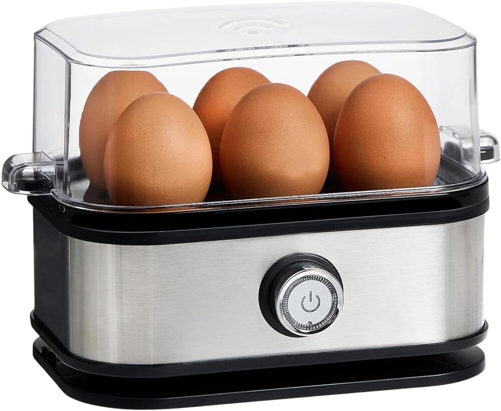 Egg Cooker - Rapid Electric 6 Eggs with Auto Shut-Off, Stainless Steel Egg Boiler, Small Kitchen Appliances Food.