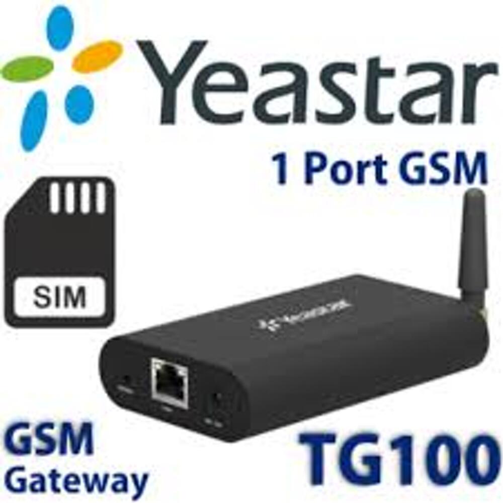 Yeastar TG100 is a fully featured 1 port VoIP GSM/CDMA/UMTS gateway that provides GSM/CDMA/UMTS network connectivity for softswitch and IP PBX. Reduce Costs for SOHO • Rich functionalities: A robust feature set that fulfills your various needs and cuts communication cost • Easy management: Simple and intuitive Web-based configuration saves you loads of time • Reliable performance: Stable with advanced hardware and software architecture • Excellent interoperability: Interoperable with a broad list of softswitch, PBX, and IP-PBX like Elastix and Lync Server Product Specifications: • Mobile : 1 x GSM/CDMA/UMTS Channel • GSM Frequency: 850/900/1800/1900 MHz • UMTS Frequency : 850/1900 MHz, 850/2100 MHz, 900/2100 MHz • CDMA Frequency: 800 MHz • Protocol: SIP, IAX2 • Transport: UDP, TCP, TLS, SRTP • Voice Codec: G.711 (alaw/ulaw), G.722, G.726, G.729A, GSM, ADPCM, Speex • Echo Cancellation: ITU-T G.168 LEC • DTMF Mode: RFC2833, SIP INFO, In-band • Calling Type: Termination (VoIP to GSM/CDMA/UMTS), Origination (GSM/CDMA/UMTS to VoIP) • LAN: 1 x 10/100Base-T Ethernet • Network Protocol: FTP, TFTP, HTTP, HTTPS, SSH • NAT Traversal: Static NAT, STUN • Network: DHCP, DDNS, Firewall, OpenVPN, Static IP, QoS, Static Route, VLAN • Power Supply: DC 12V, 1A • Operation Range: 0°C to 40°C, 32°F to 104°F • Storage Range: -20°C to 65°C, -4°F to 149°F • Humidity: 10-90% non-condensing Product Includes: • 1 x TG100 Device • 1 x Power adaptor • 1 x Antenna Technical Data Sheets and User Manuals: Fully featured 1 port VoIP GSM gateway that provides GSMnetwork connectivity for softswitch and IP PBX. It significantly reduces the costs of calls with two-way communication: VoIP to GSM/CDMA and GSM/CDMA to VoIP