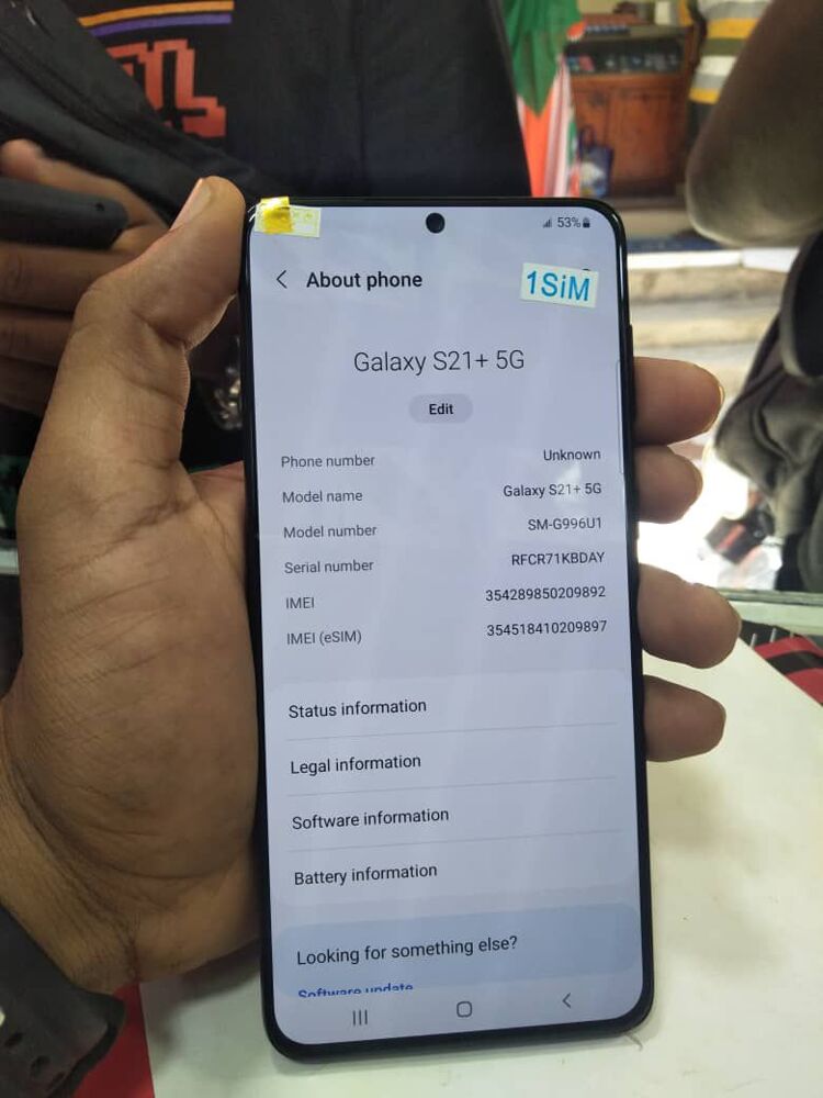 Price 1.3M Samsung Galaxy S21+ 5G, full box RAM : 8GB , Storage:ROM 128GB , Iko vizuri ni Mpya kabisa , Screen 6.9" 1440x3088 , pixels Camera: 108MP ,4320p 6/8GB RAM Exynos 990 , Bettery : 4500mAh Li-Ion